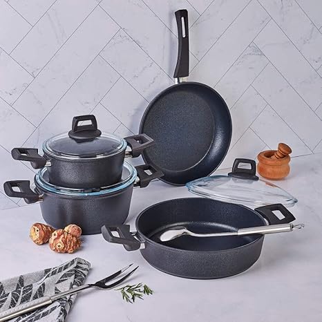 Thermoad alüminyum döküm 3'lü tava seti / gri. Karaca bıo dıamond rose gold 7 parça tencere seti. 10 yıl garantili i̇sviçre'de geliştirilmiş türkiye'de üretilmiştir. Karaca morena 7 parça granit tencere seti.